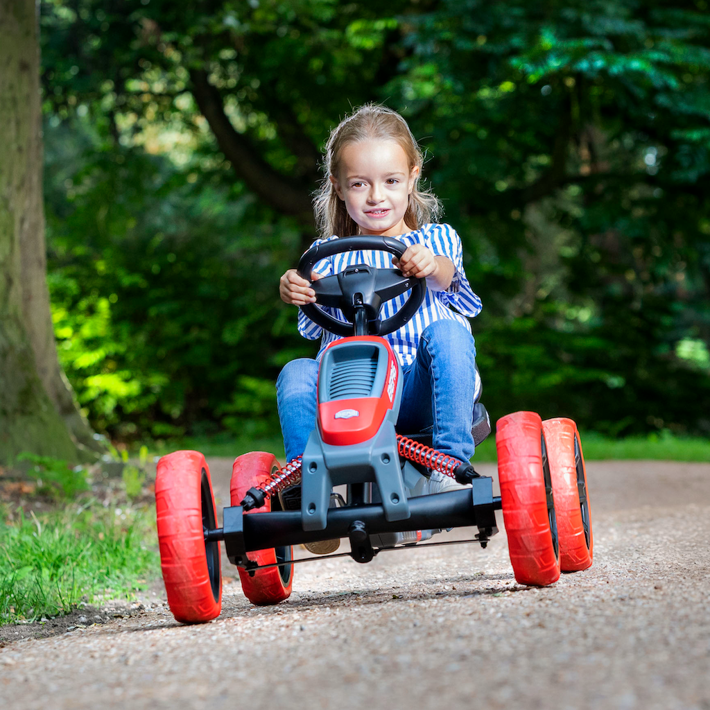 Materiales: La estructura es de acero y las ruedas de EVA.